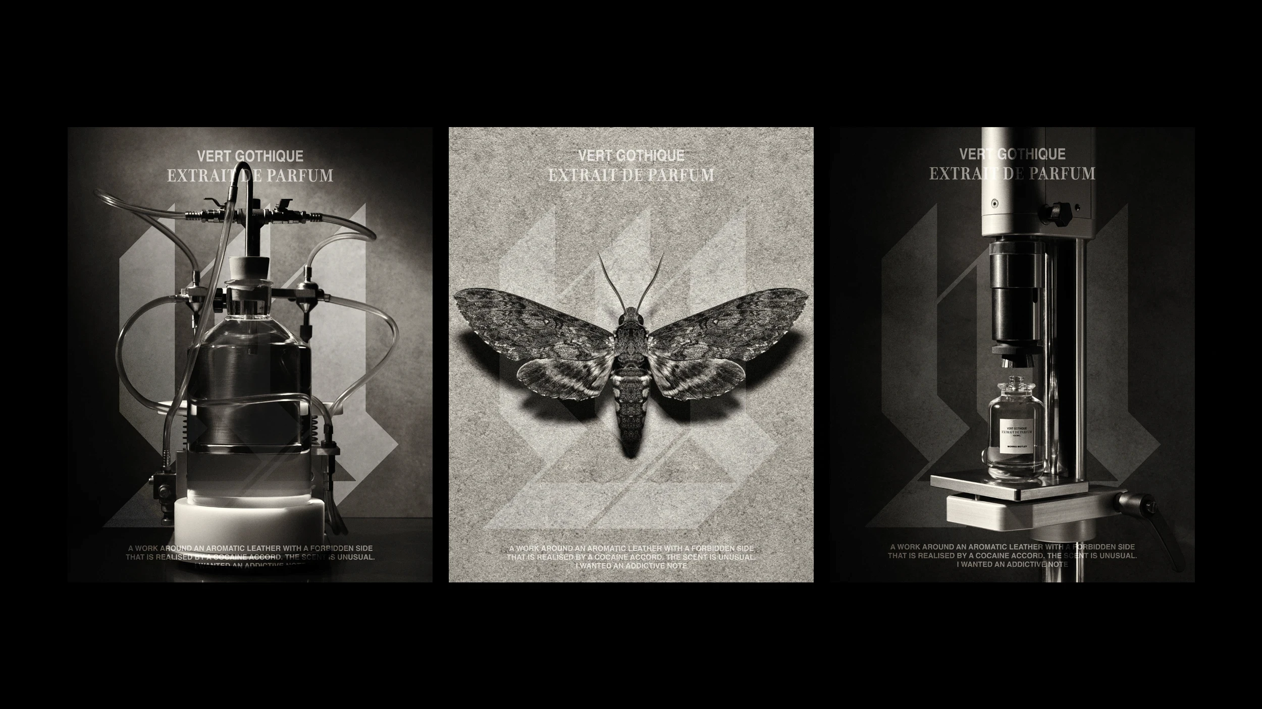 Vert Gothique is a bold and unconventional extrait de parfum by Morris Motley, designed to evoke depth, contrast, and mystique. In collaboration with Rob Mason, I led the brand identity and packaging design, including the logo and logotype. Inspired by the gothic sensibilities inherent in the fragrance featuring rich notes like oakmoss, patchouli, and leather. The visual system embraces minimalism and tension. The result is a refined and architectural design language that captures the essence of the scent: powerful, enigmatic, and unapologetically modern.